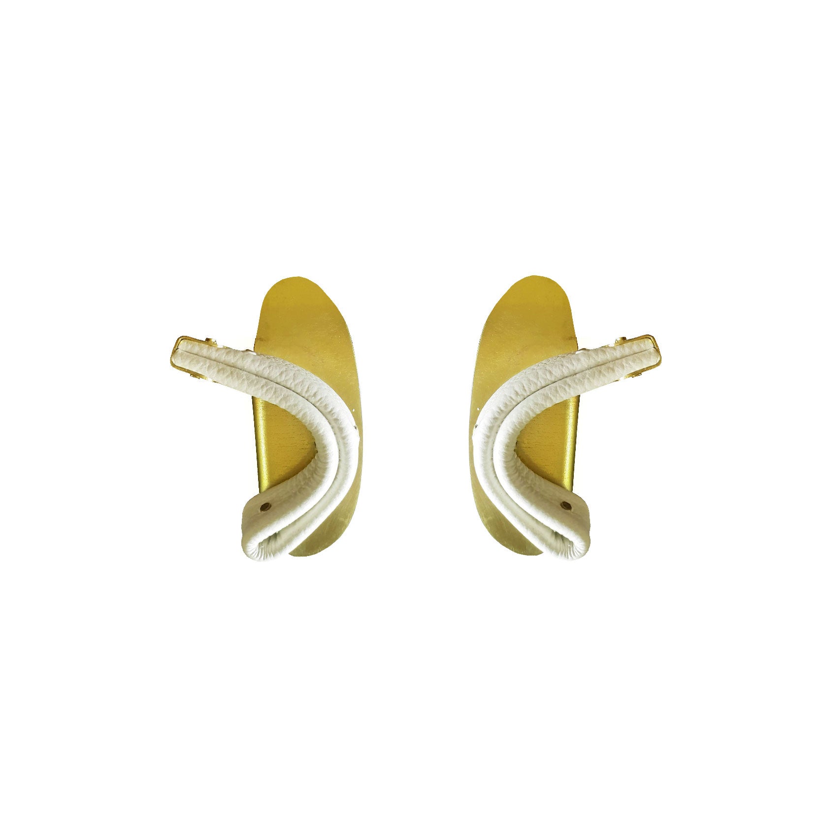 Material: Brass with sterling silver ear pins and leather offcuts.